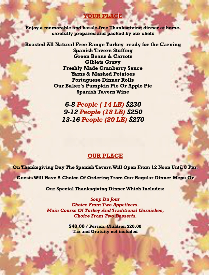 Those who have dined with us at Spanish Tavern of Mountainside have come to know us as a restaurant they can rely on for superb food, delicious drinks, exceptional service and a gorgeous environment to turn the everyday and most special of occasions into warm memories.